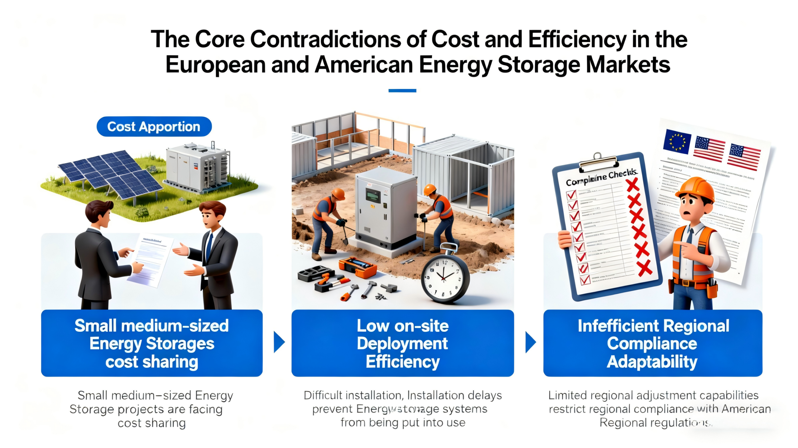 当前欧美储能市场的成本效率矛盾已十分突出,核心问题集中在以下四大方面: