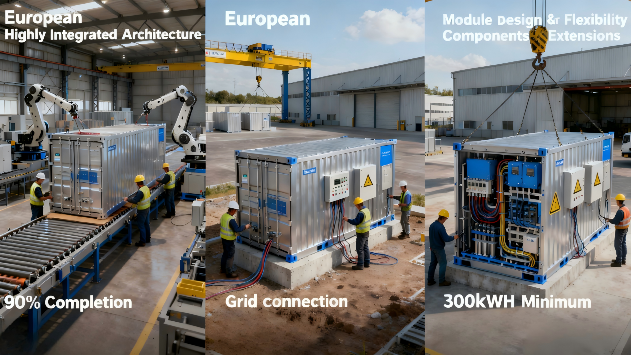 传统预装系统工厂集成度不足70%,大量组装调试工作需在现场完成。受场地条件、人工技术等因素影响,10MWh级项目平均安装周期长达16天,人工成本占比超综合成本20%,且现场操作易引发安全隐患,进一步影响项目推进效率。