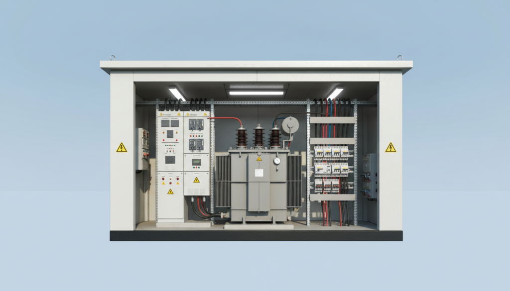 在工业用户自建的中压变电所中,例如巴符州汽车工厂或莱茵河沿岸化工园区,DIN 42500 变压器通常被布置在独立的变压器间,通过穿墙套管或电缆与 EN 62271 中压开关柜和 IEC 61439 低压配电柜相连。站房的门洞尺寸、轨道和集油坑大多依照 DIN 42500 外形尺寸设计,新旧变压器可以在计划检修窗口内快速更换,减少生产中断时间。