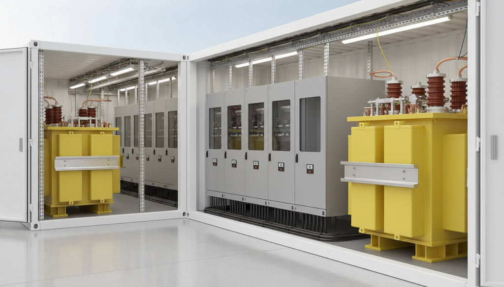 在德国,越来越多的中压系统不再以“单台变压器 + 分立开关柜”的形式出现,而是以紧凑型环网站、楼宇变电站或预制舱站等整体解决方案交付。局部放电≤5 pC变压器需要在这种高集成度环境下,与中压开关柜(RMU)、母线桥架和电缆终端实现整体电场优化和绝缘匹配。